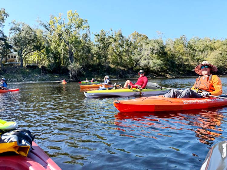 As I floated in the river current, at times lightly paddling to straighten up my little kayak, I found my eyes drawn to the movements and sounds around me. Nine other men in their own kayaks talked with each other. Our guide Rob gave us a constant preview of upcoming sights