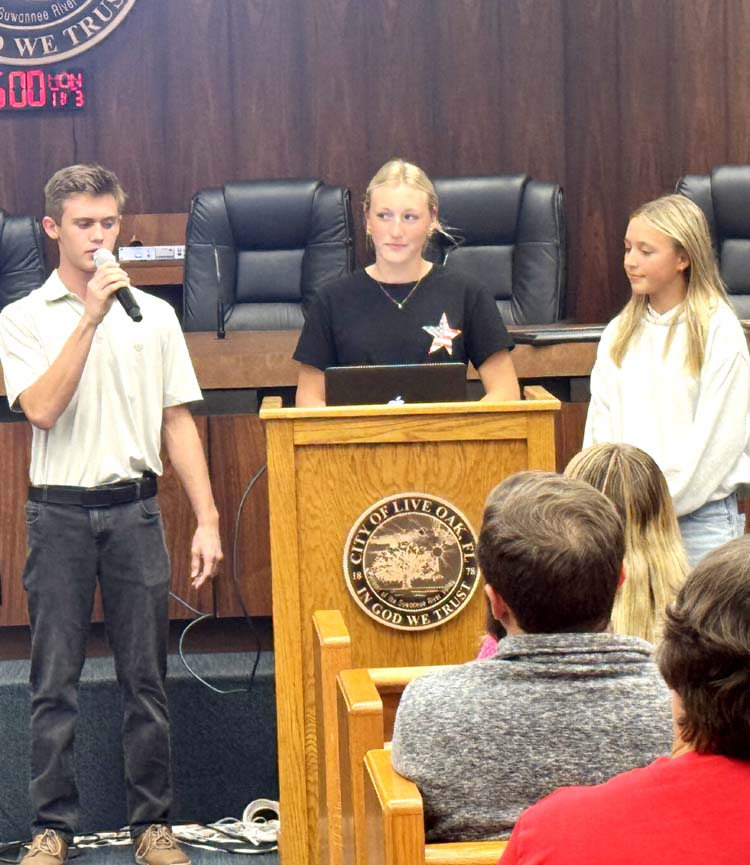 L-R: Hunter Wainwright, Brooklyn Long and Julia Wainwright each took turns speaking at the first Live Oak Club America meeting. -SVT Photo by Tami Stevenson