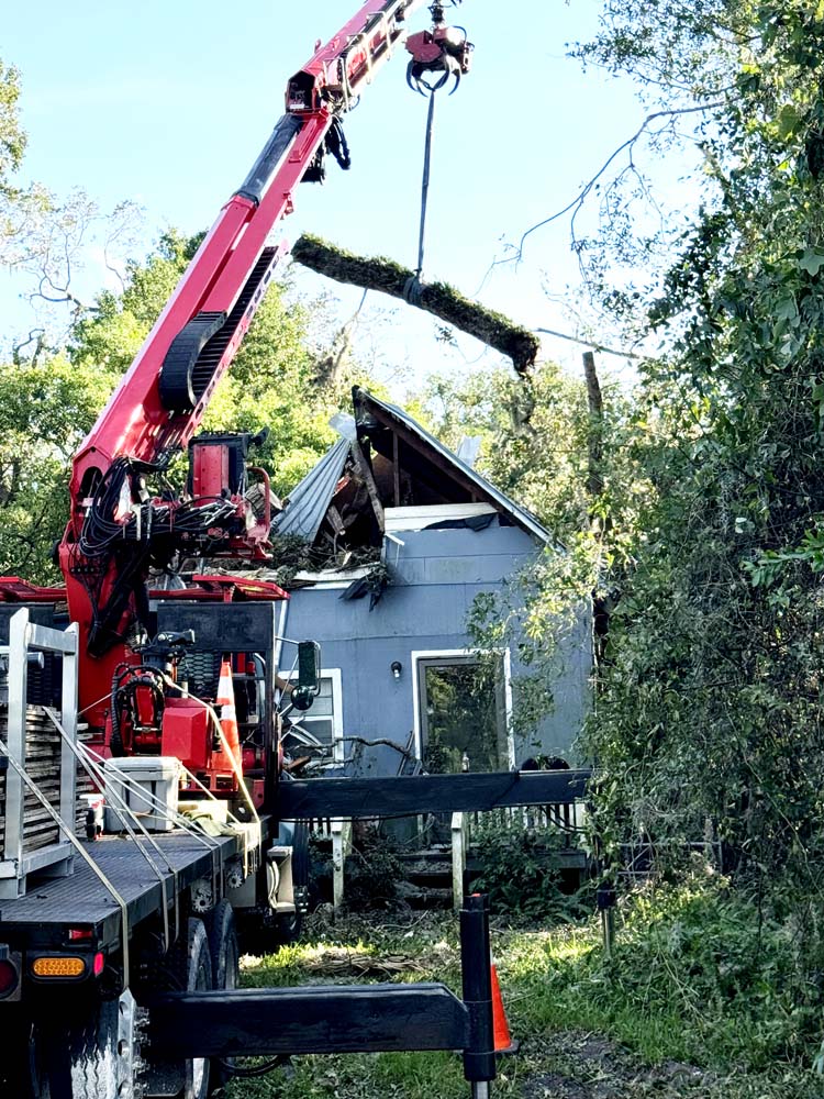 Tree limbs being removed from the Roddenberry home, Saturday, after Hurricane Helene brought wind gusts of 118+ mph to the Live Oak area. -SVT Photo by Tami Stevenson