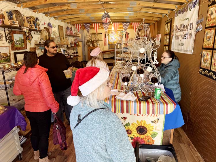 Inside the Country Store, Mindy Janousek behind the counter with Michelle Boyd (not pictured) giving samples of their Brunswick Stew with 3 meats. -SVT Photo