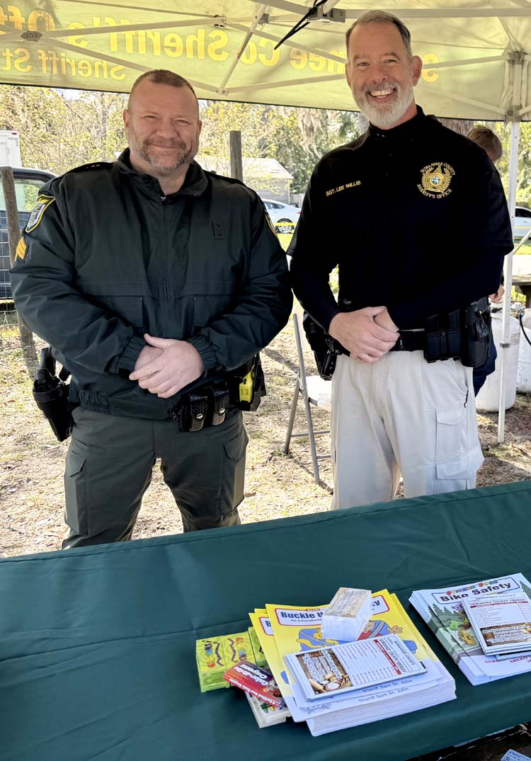 Sgt. Brian Barrs, left, and Sgt. Lee Willis said the sheriff’s office had a booth at the event although the election is over, they will stay engaged with the community regardless of politics. They handed out bike safety info for kids and more. -SVT Photo