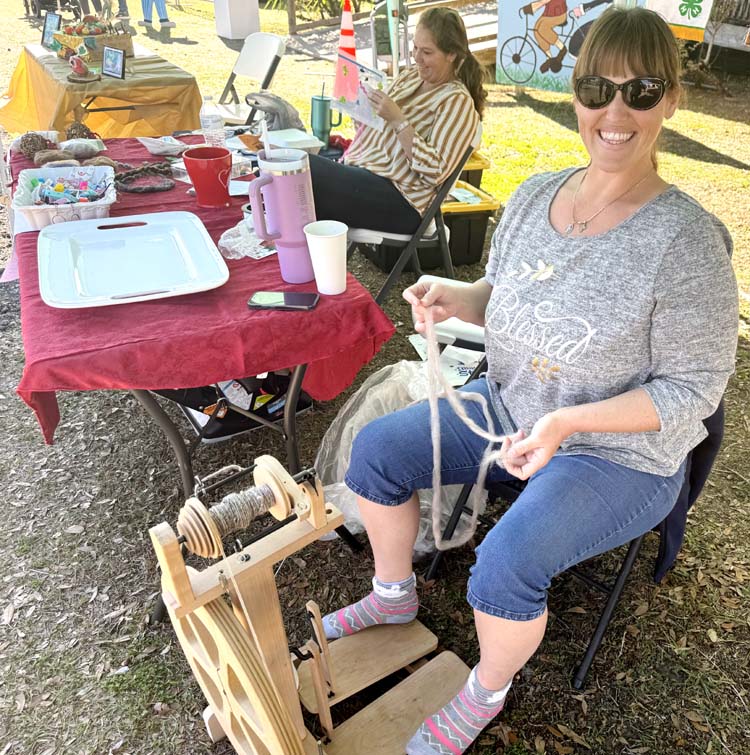 Erin Greeley, Right, was producing core spun yarn made from 75 percent alpaca and 25 percent wool from their own alpacas. Left, Sarah Strautmann, owner of Heaven Sent Ranch of Live Oak. -SVT Photo