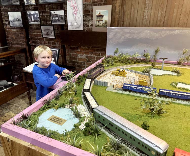 Harbor Carney, of Live Oak, running the remote control train track set up in the museum. The train set was donated to the Suwannee County Historical Museum by John and Brenda Summerfield. -SVT Photo