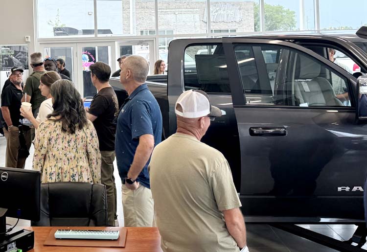 Guests visit inside the show room at Walt’s CDJR during their grand opening. -SVT Photos by Tami Stevenson