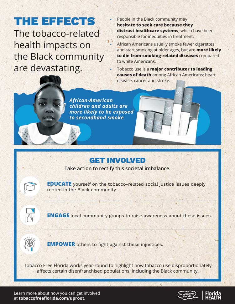 Tobacco’s deadly health effects play a major role in nearly all leading causes of death among African Americans in Florida, including heart disease, cancer and stroke.,,