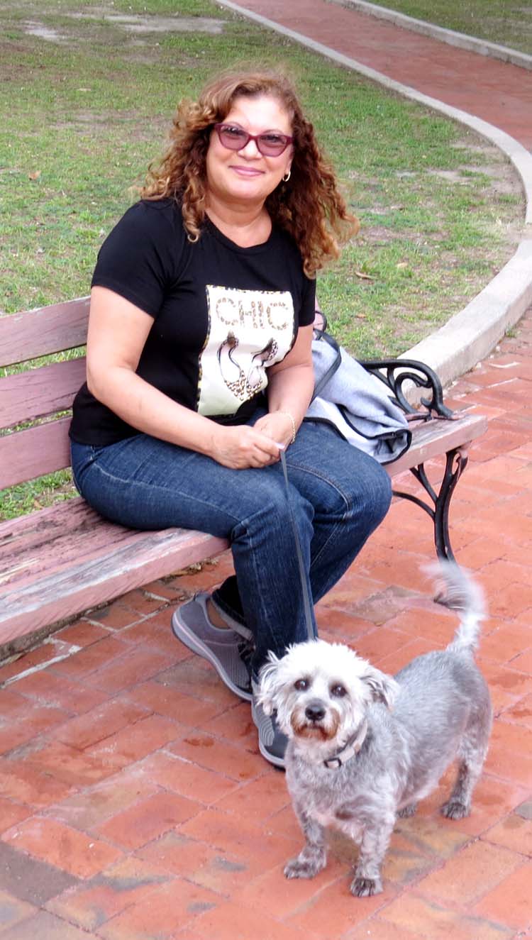Janet Perez Santos of Lake City, with her dog, Smokey, relaxing on a bench in Freedom Park. -SVT Photo
