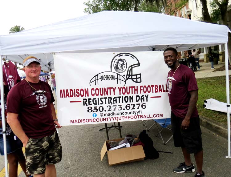 Among the vendors, David Plummer and Frankie Manor from Madison County Youth Football were there. As part of the Fellowship of Christian Athletes League (FCA), they were giving out information and signing up youth from ages 5-12 to become part of the football league, which also has cheerleaders. They wanted to let readers know they accept students from Suwannee and Hamilton County as well as Madison.