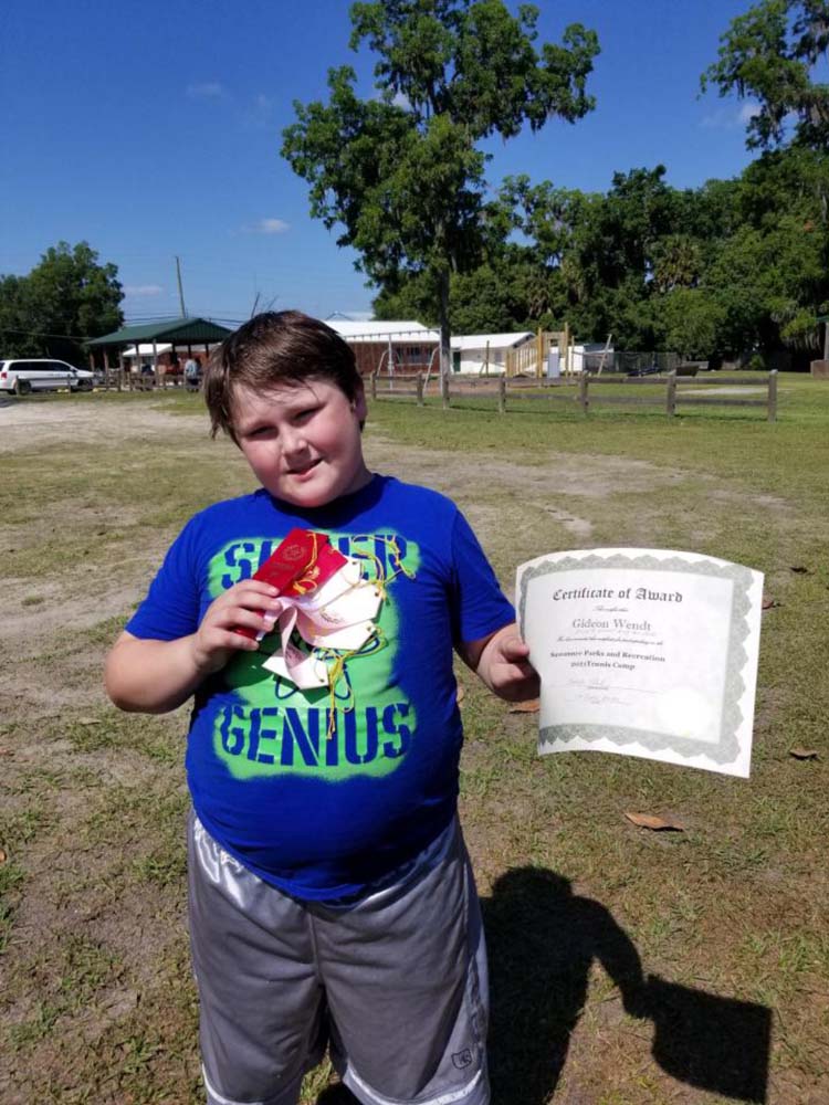 The 49th Annual Tennis Camp Awards Ceremony was held recently at the Suwannee Parks & Recreation Center in Live Oak with tennis instructor Bob Palmer, along with Pam Sherburne. The tennis camp normally begins the first or second Tuesday after school lets out for summer break. There are two groups, the seven and under group and the eight to twelve group.