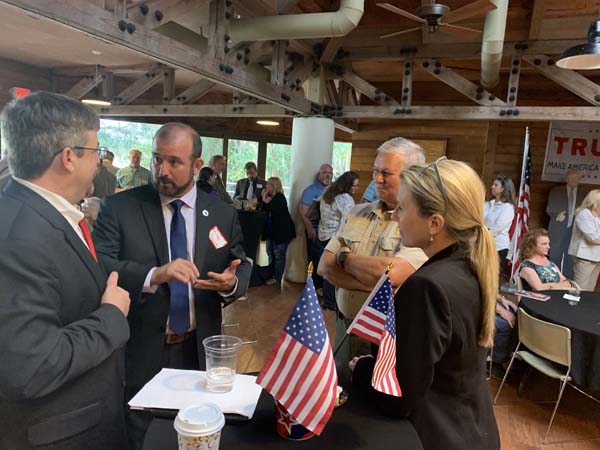 Local officials took a moment to visit while waiting to hear Lieutenant Colonel (Ret) Allen B. West and others speak on the evening of Sept. 5. -Photo by Jeffry Boatright