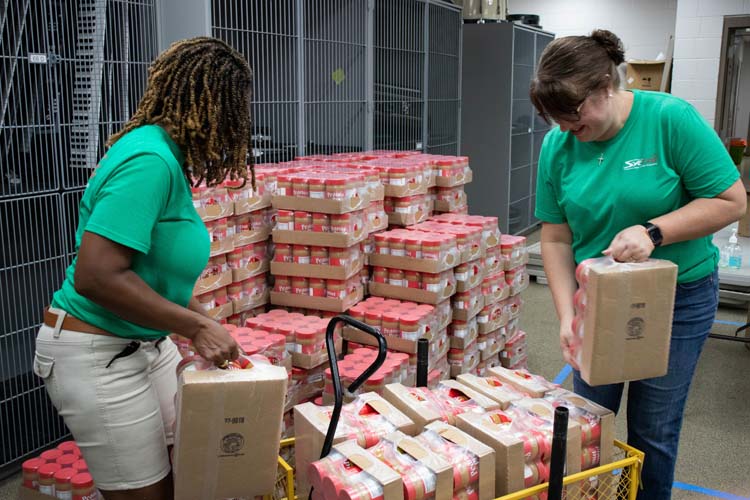 SVEC’s Trevita Riley (left) and Denny Tompkins load peanut butter donated by the Florida Peanut Federation. -Photo: Submitted