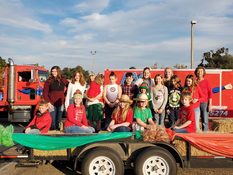 The Suwannee Young Riders 4H Club waiting in line on their float to enter the annual Lighted Christmas Parade that followed the days’ events. -Photo submitted by Allison Carter