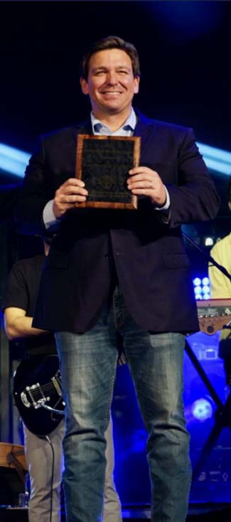 Above Photo: Governor Ron DeSantis received the Defender of Freedom award at “Let Us Worship” in Miami on December 31. -Photo: Courtesy