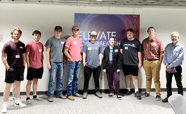 NFC Physics II students (L to R) Joseph Mickler (Hamilton), Landen Brock (Lafayette ), Blake Adams (Suwannee), Gabriel Hancock (Lafayette), Emery Wilkerson (Madison), Alyssa Wheeler (Madison), Traynor Barker (Jefferson), Timothy Warfel (Hamilton) and NFC Physics instructor Dr. Guenter Maresch. -Photo: Submitted by NFC