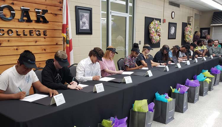 In a style similar to “National Signing Day” events for high school student athletes, twenty-two students in all, signed “letters of intent” for advanced technical training at RIVEROAK. -Photo: Submitted