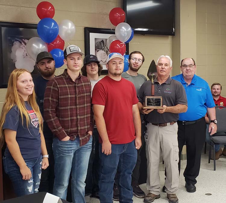 Above Photo: Al Herndon, Florida Masonry Apprentice & Educational Foundation Representative, presented the Golden Trowel Award to RIVEROAK Technical College’s Brick & Block Masonry program for winning the “Team Masonry” event. RIVEROAK has won the traveling trophy eight times. -Photo: Submitted