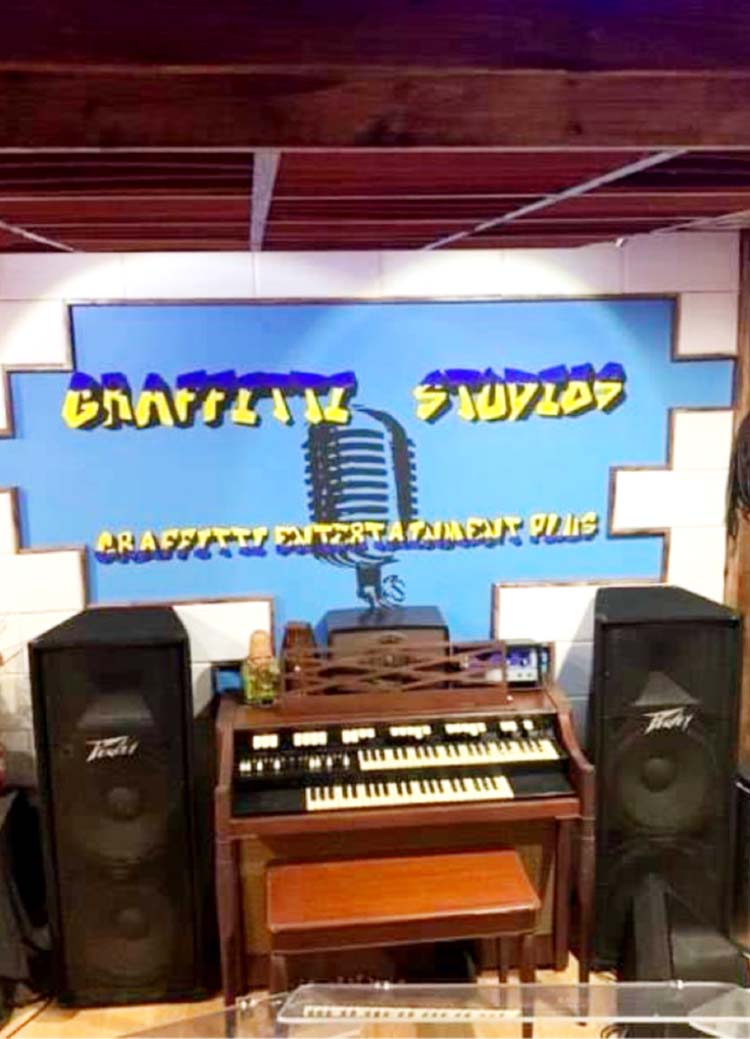 Guy also owns a video recording company called Angel Video Productions, so they record and produce music videos as well at Graffitti Studios.