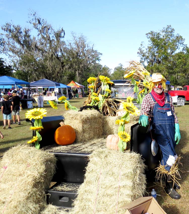 Hearthstone Gardens owners Judy and Mark Mundy donated scarecrows for the event, even a live one! Mark Mundy aptly played the part and said he was having more fun than anybody there!