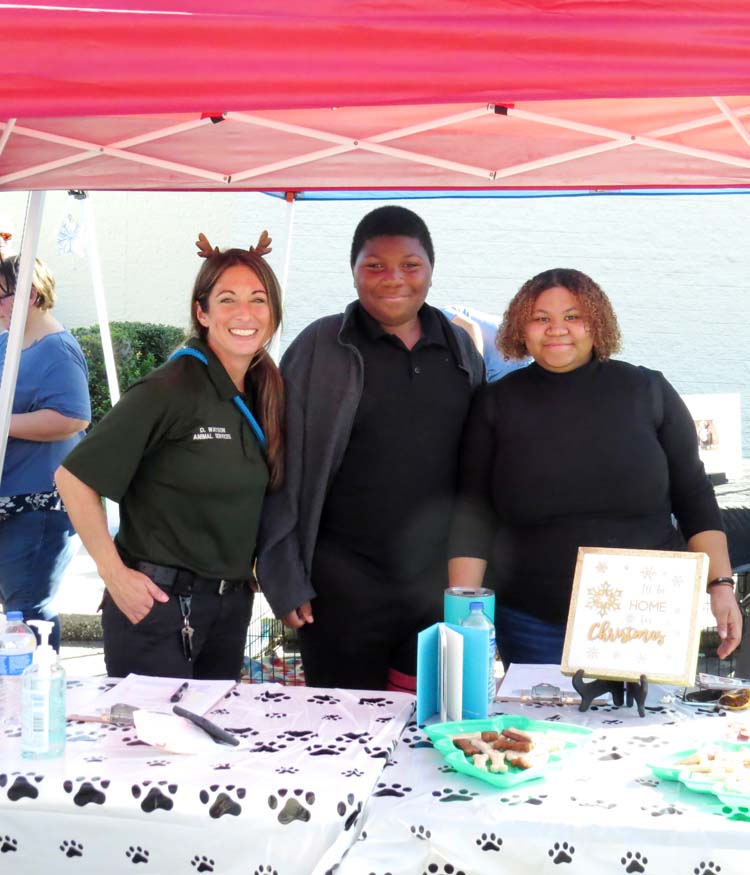 Suwannee County Animal Control Officer Denise Watson, shown left, with Jaylon Thompkins and Danay Brown, new forever home parents of Dice, a rescue dog from the shelter they had brought to the event. Dice was there 4th adoption, Saturday. -SVT Photo