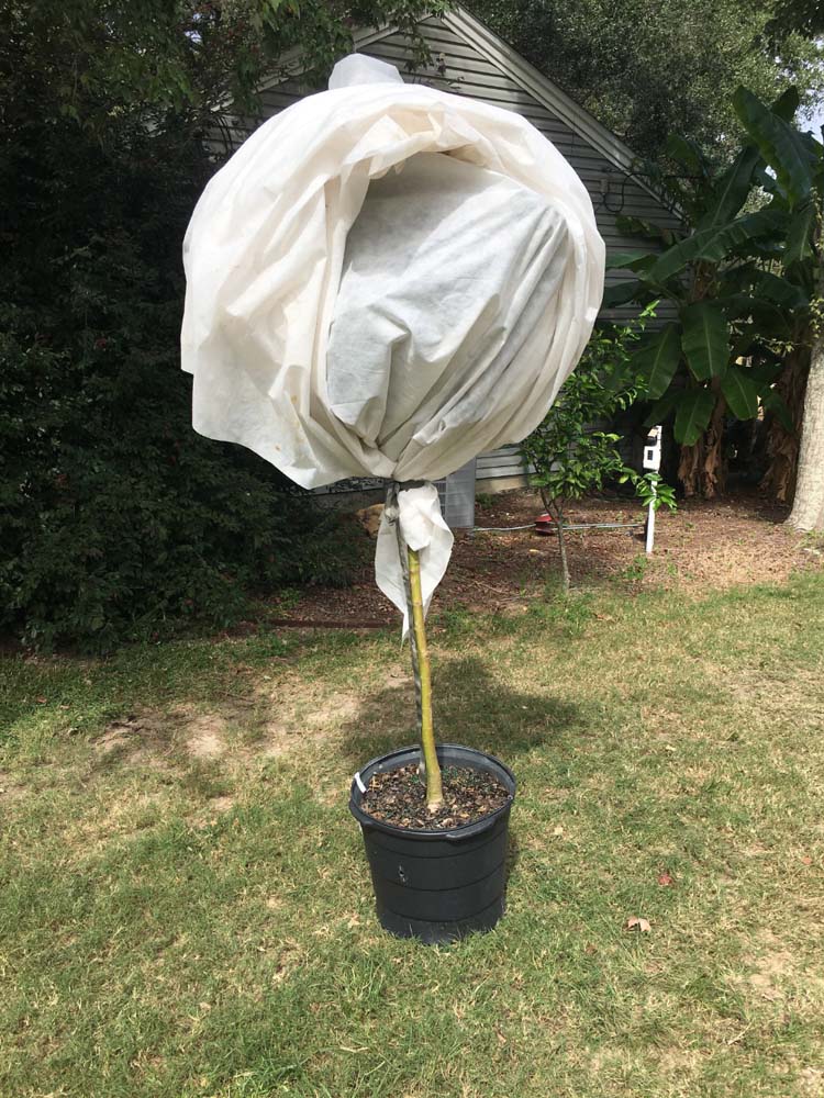 We don’t recommend using plastic for covering because it can heat up like a greenhouse and cause more problems than the cold temperature, especially for leaves that are touching the plastic.