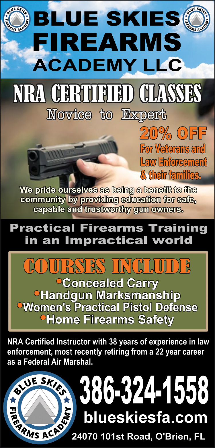 Rick Banke is a retired U.S Federal Air Marshal of 20 years, former municipal law enforcement officer and U.S Army Veteran. He is a certified pistol, rifle, and shotgun instructor. He is the owner & range master of Blue Skies Firearms Academy, LLC in O’Brien FL.