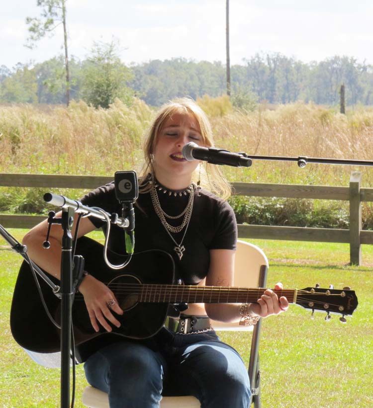 Among the musicians scheduled to play was nineteen year old Jilyanne Hiltibidal, performing under the name, Gray Murder. She sang and played some original music along with other songs on her guitar in the pavilion. Her mother Lindsey, said Jilyanne is self-taught and came up with her stage name because she loves crows and birds.