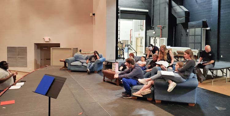 The cast of Four Sons receives notes from Director Johnathan Cooks. -NFC Photo