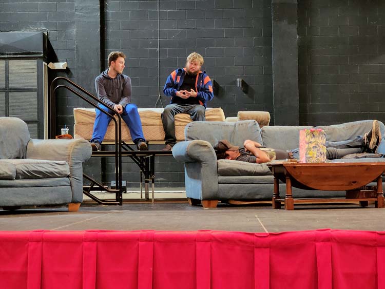 (left to right) Actors Jenner Wallace (Madison County), Hank Thompson (Madison County), and Miguel Rosalio (Lafayette County) rehearse a scene from Four Sons - NFC Photo