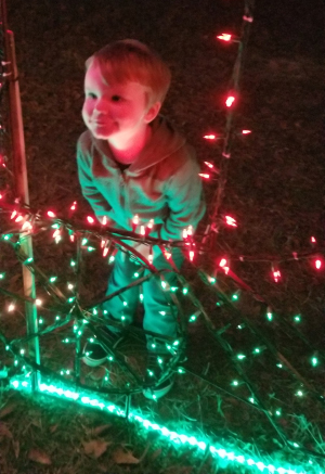 Three-year-old Wyatt Green loved the lighted train display! He had to get up close to see how it was put together. -SVT Photo by Tami Stevenson