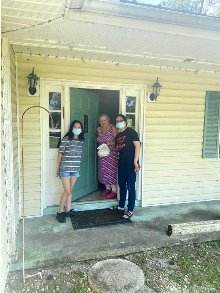 Jennifer and Stephanie Chen deliver a meal to Lulu, of Live Oak. -Photo Submitted