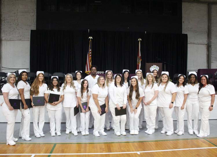 RIVEROAK Technical College held its 2020-2021 Practical Nursing Graduation on Thursday, July 1, 2021, at 6:00 p.m., at the Suwannee County Coliseum. Twenty students successfully completed the 11 month, 1,350 clock hour program and received their diploma and nursing pin.