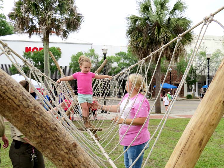 Bailynn, from Texas, braved the popular cross-over bridge the Boy Scouts had set up at the Madison Down Home Days event. -SVT Photo by Tami Stevenson