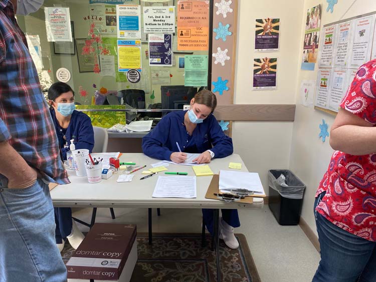 RIVEROAK students Kayla Jackson (left) and Alex Sullivan (right) helped administer COVID vaccinations last month in Lafayette County. -Photo: RIVEROAK Technical College