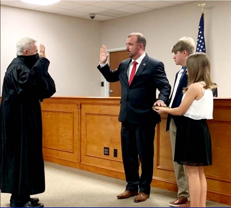 Above: Third Circuit Judge David W. Fina, swearing in New Suwannee County Property Appraiser Ricky Gamble, with his children Dawson and Hannah Gamble at his side holding the Bible. -Photo: City of Live Oak
