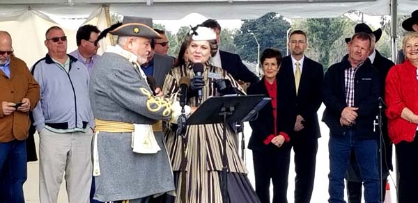 Officials gathered as the Blue-Grey Army’s Major General Dr. Tony Buzzella and Brigadier General Jeanie Wilks began the opening ceremonies at their new venue in Wilson Park with beautiful Lake DeSoto as the backdrop. -SVT Photo by Tami Stevenson