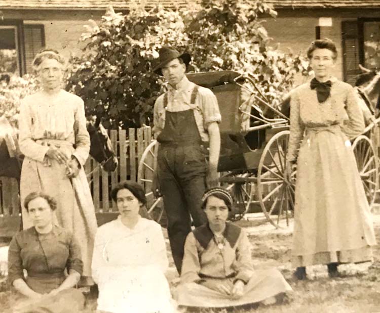 Standing L-R, WB’s mother Mary Ann Lamb Howland, WB Howland, Aunt Narcissa Lamb. Seated L-R, friend Jessie Goff, Walla Howland and Louise Howland Hines, mother of the famed Andy Hampton Hines war hero. -Photo Submitted by Lyn Fletcher