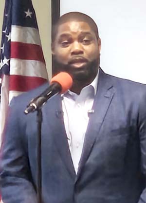 Byron Donalds, Republican front runner in the Florida primary race for Governor, speaking at the dinner. -Photo by Barb Gill