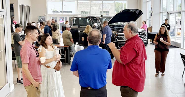 Guests visit inside the show room at Walt’s CDJR during their grand opening. -SVT Photos by Tami Stevenson