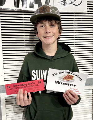 Jacob Champange of Live Oak was the 1:30 p.m. pie eating contest winner. Jacob won a certificate that entitled him to $5 off at the vendor booth of his choice. -SVT Photo