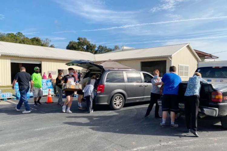 Volunteers loading vehicles with Thanksgiving baskets last Thursday in Lake City. -Photo: Submitted