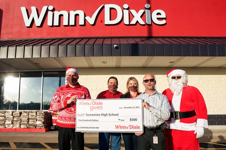 Live Oak, Fla., – Winn-Dixie officially unveiled the newly remodeled Live Oak Winn-Dixie store to the local community on Wednesday, Dec. 15 with a ribbon cutting ceremony at 8 a.m. at the store, located at 911 Pinewood Drive SW in Live Oak. In celebration of the new store and to give back to the community and its future leaders, Winn-Dixie presented a $500 donation to Suwannee High School and a $500 donation to Wellborn Community Association during the ceremony.
