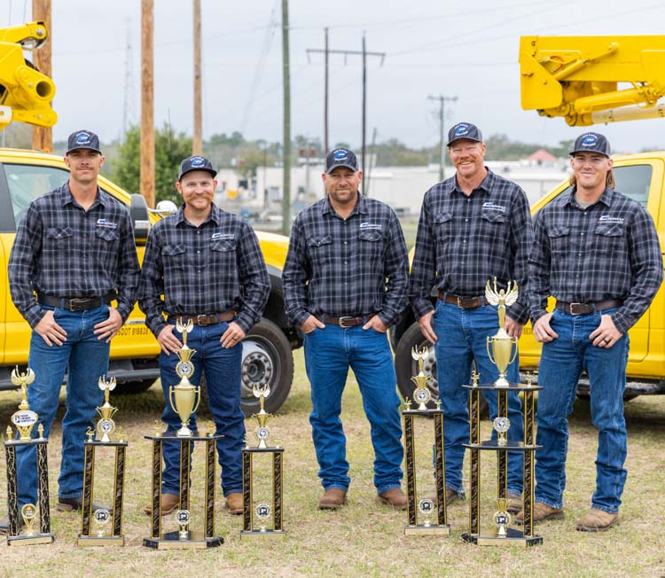 Clay Electric lineworkers won first place in the crossarm change out event at the annual Florida Lineman Competition last weekend in Fort Pierce, besting competitors from across the state.