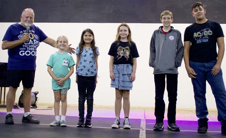 PHOTO: Principal Tony Buzzella with student award winners from Constitutional exam scores. The winners are, from L-R: Anna Buzzella (Primary), Sophia Sena (Lower Elementary), Saylor Cannon (Upper Elementary), Peter Krafinski (Middle School) and Dorian Ortiz-Pagan (Highschool). - SVT Photo by Gabrielle Stevenson