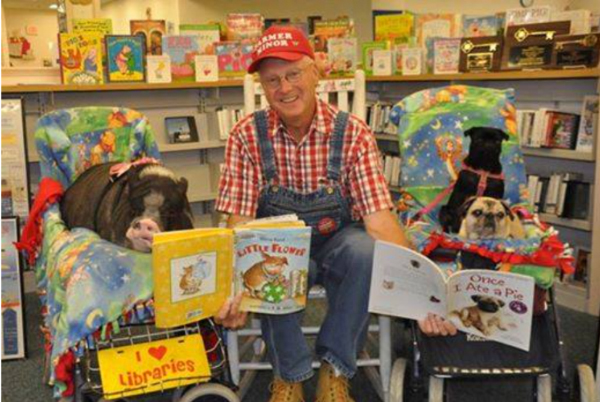Daisy, the Potbelly Pig Promotes Reading wherever she goes