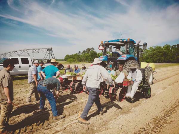 Workers transplant tobacco plants into the field. -Photo: Submitted