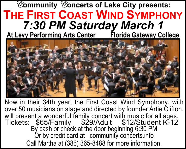 Community Concerts of Lake City presents: The First Coast Wind Symphony Performs March 1