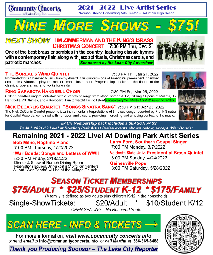 Lake City, Fla., – Tim Zimmerman and the King's Brass Christmas Concert December 2.
